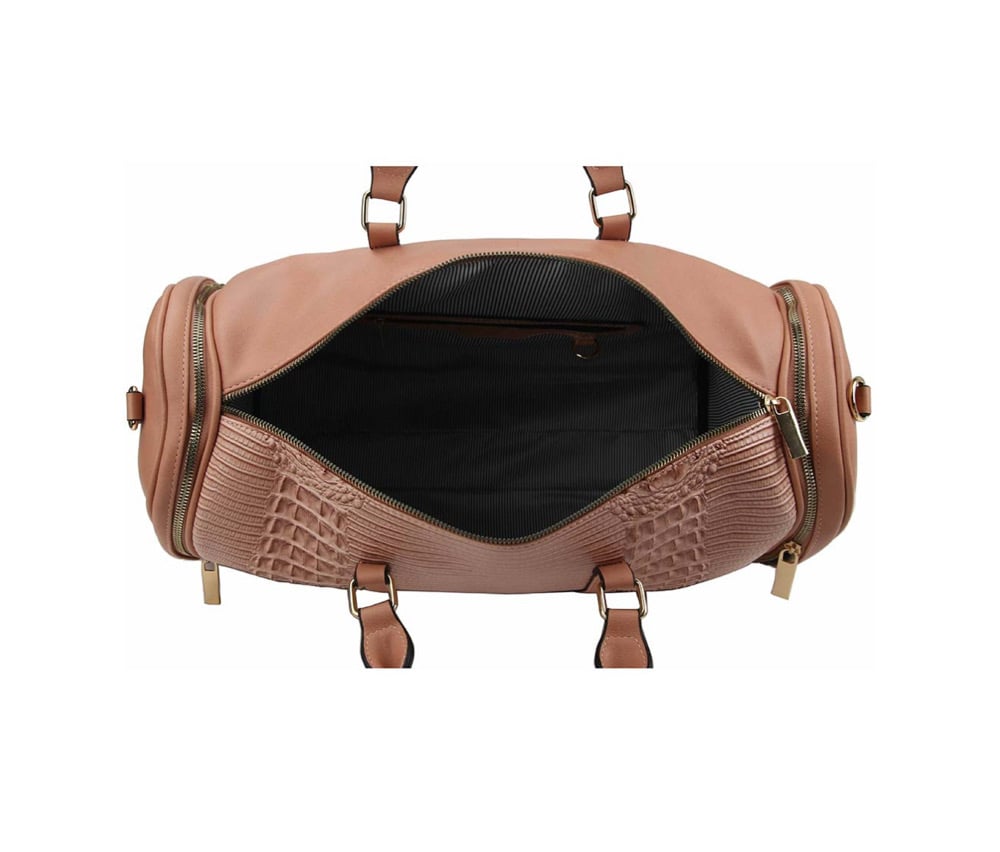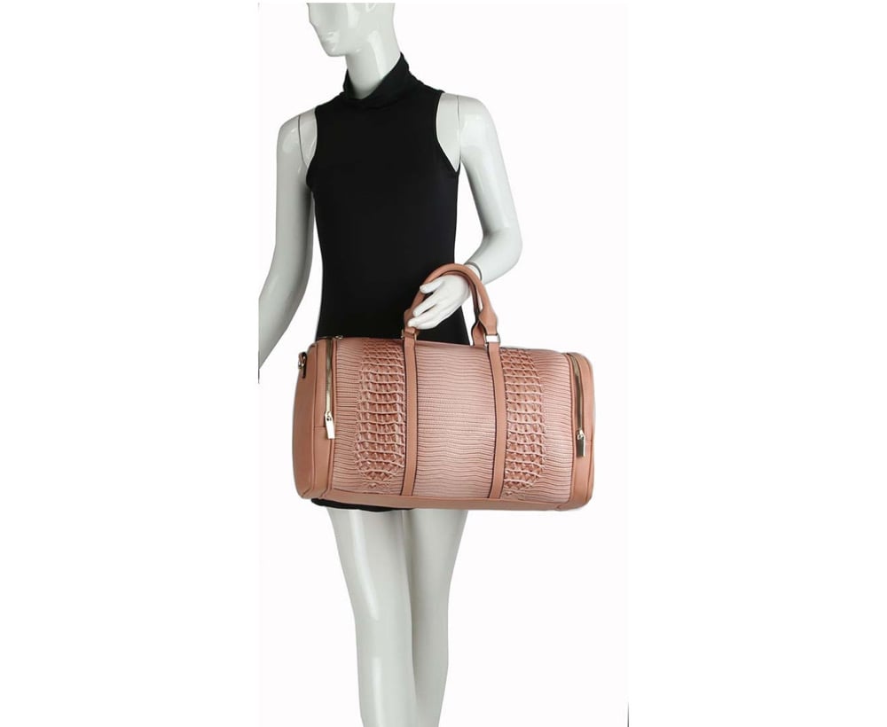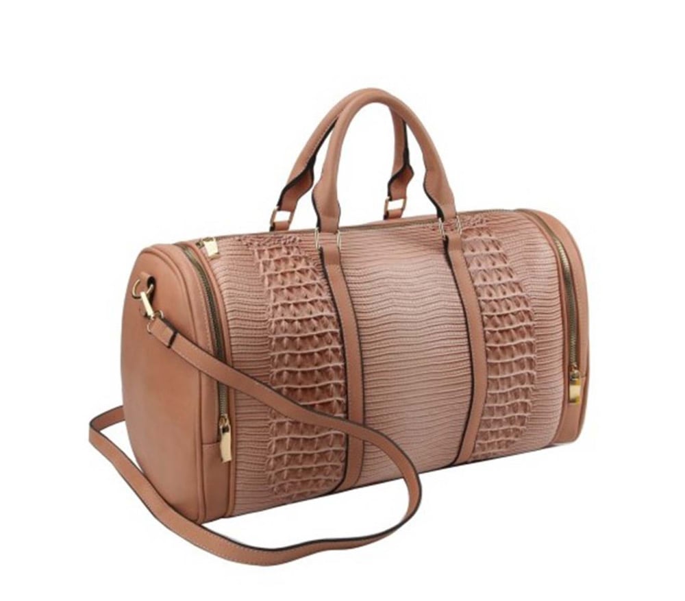 This stunning duffle is perfect for travel, it’s embossed print is a timeless piece that brings double the versatility to your collection.